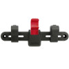 Comfortable pannier rail with automatic adjustment of the locking mechanism on different carriers with Ø 8–16mm. The hook position can be easily adjusted horizontally without the need of tools by pressing the black button.