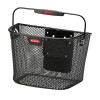 The smallest version of the meshed handlebar basket. Coated surface. With handle and special adapter plate for adjustable height. Fits into KLICKfix handlebar adapter. Also perfect for kids' bikes. You can mount the adapter plate at different heights to leave enough space for your light.